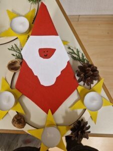 Im Anschluss an die Geschichte wurde es kreativ: Die Kinder legten selbst Hand an und bastelten verschiedene weihnachtliche Dekorationen. Mit Begeisterung entstanden bunte Karten, festliche Adventskränze, leuchtende Engel und Nikoläuse aus roten Servietten, die die Kinder stolz mit nach Hause nehmen konnten.