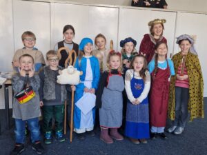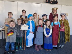 Seit Anfang November treffen sich 20 Kinder ab 5 Jahren zu den Krippenspielproben, und es geht mit großen Schritten voran! Mit viel Spaß und Begeisterung wird fleißig geprobt und Kostüme werden anprobiert. Immer professioneller werden die Texte auswendig gesprochen und selbst etwas zurückhaltender Kinder freuen sich, ins Mikrofon sprechen zu können.