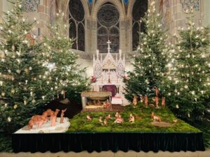 mit den Krippenfiguren des Bildhauers Helmut Bourger